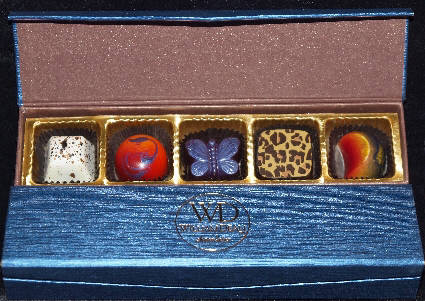 Now Talk About Yummy !!! Below is the amazing William Dean box chocolate collection with such scrumptious flavors as -- Cappuccino, Grapefruit & Tarragon, Lavender Butterfly, Mexican Mango, and Tropical Caramel just to name a few. And they are as delicious as they look. Mmmm. They are available from the Home Shopping Network at www.HSN.com a box of 20 is $39.95 and a box of 36 goes for about $70